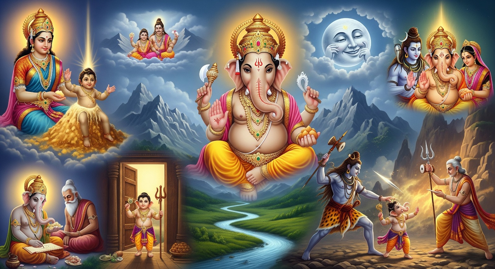 This is the most famous story! One day, Goddess Parvati created a boy from sandalwood paste to guard her door while she bathed. When Lord Shiva came home, the loyal boy, not knowing who Shiva was, refused to let him in. A huge fight broke out, and in his anger, Shiva cut off the boy's head.