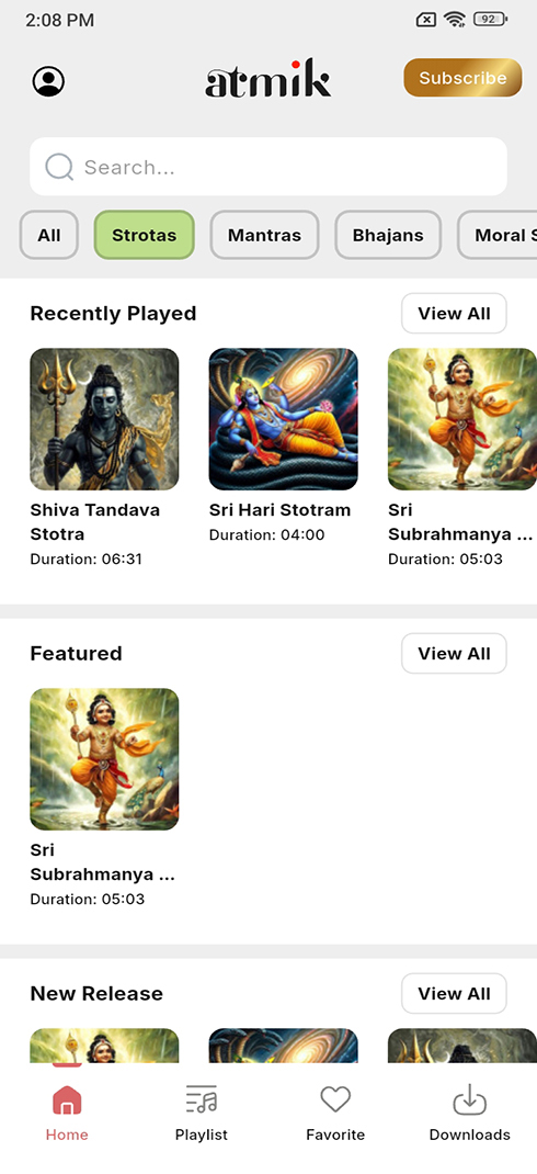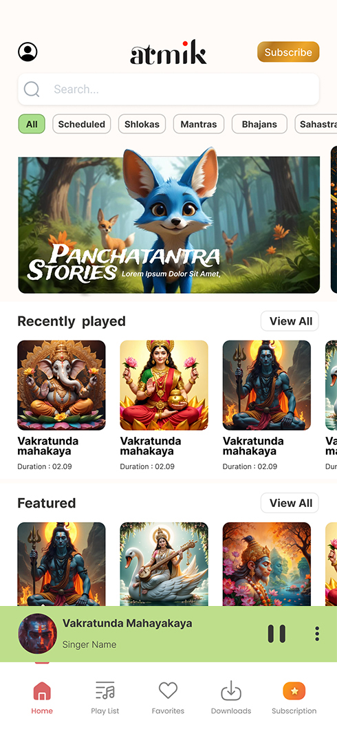 Explore a curated blend of mantras, shlokas, stories and rituals. Discover featured content, new releases and what’s trending in one sacred space.