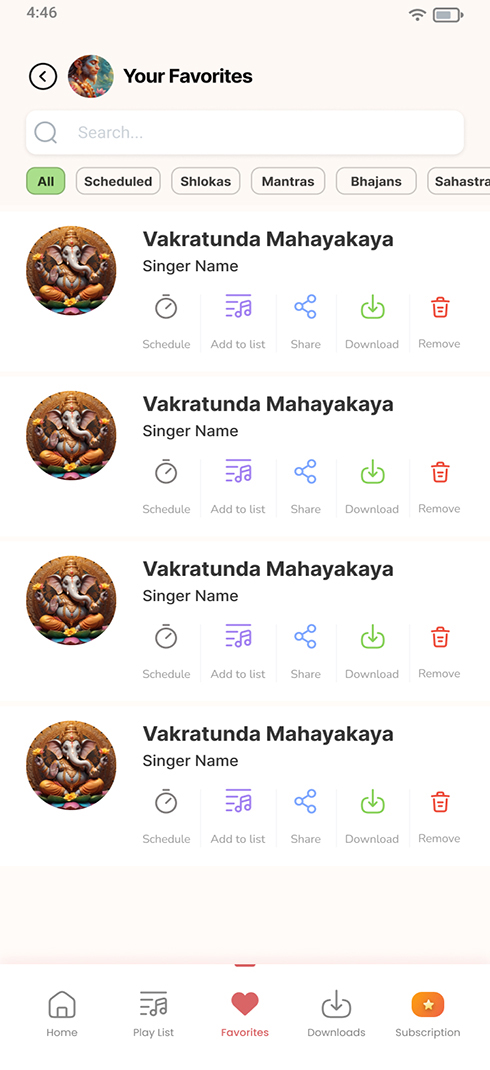 Find exactly what you need—filter by content type like mantras, shlokas, stories and rituals or stories.